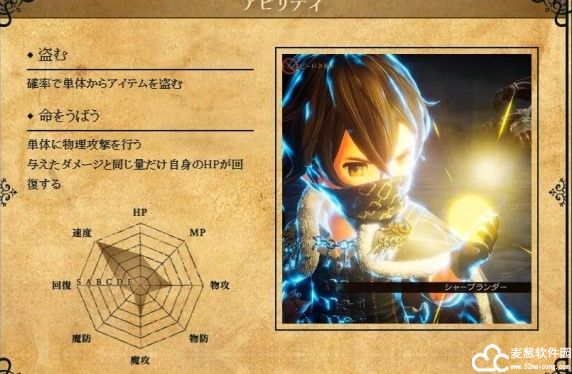 盗取敌人的道具为自己所用,而且自身的回复能力也是非常强的。