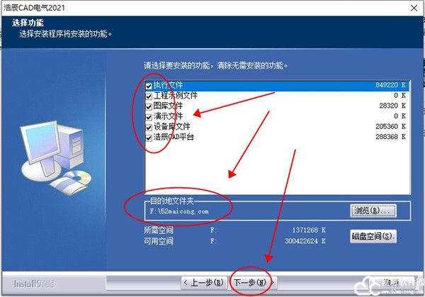 5、用户选择需要安装的文件配置,在更改一下软件的安装目录。