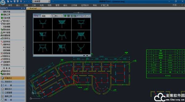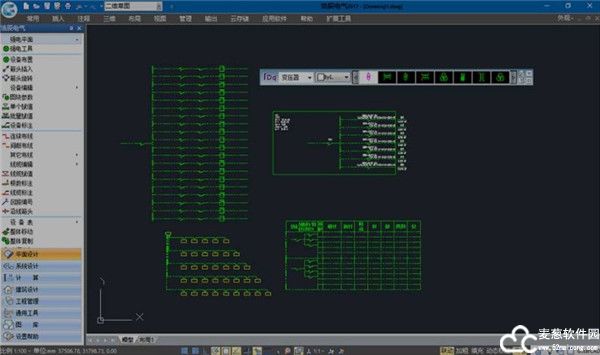 十余种设备布置方式,使设计工作随心所欲,线缆布置方便快捷,图纸绘制─气呵成;采用模糊捕捉技术,毋须准确定位导线自动追踪设备移动并智能连线,减少改图时的重复劳动;无需赋值直接标注,自动生成设备材料表。