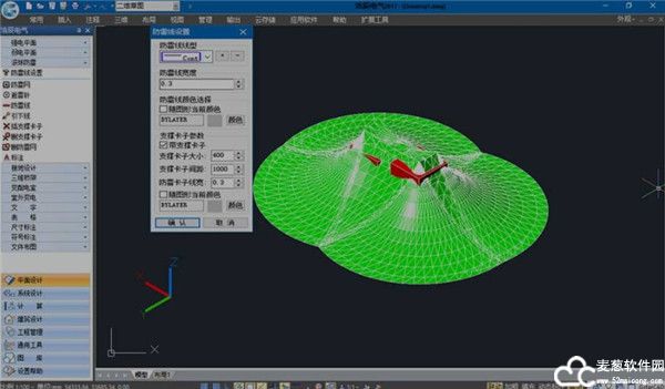 6、浩辰CAD电气2021破解版应用三维曲面设计技术,自动计算避雷针防护区域。