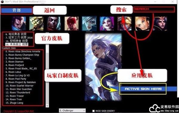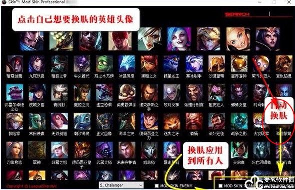 可以更换所有英雄的所有皮肤,包括各种限定皮肤和绝版皮肤!只需简单几步操作即一键更换,软件对英雄进行了详细的分类,也可以直接模糊搜索。
