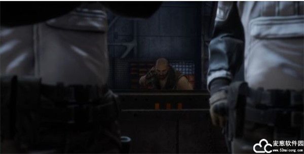然后往前走,到下图的位置,等两名看门的敌人走开后,直接进门即可。