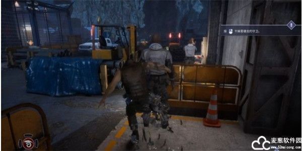 迅速解决掉下图的这名敌人,但是要注意别被中间挖机发现。