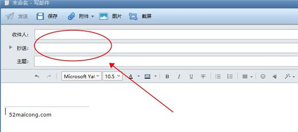2、输入收件人以及抄送和主题,否则就发送不了。