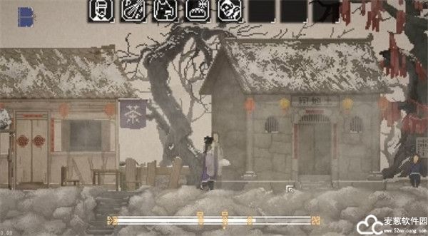 画面上游戏做过多种尝试,最终确定以像素画法来表现国画水墨的感觉,不同于以往大部分游戏的画面。