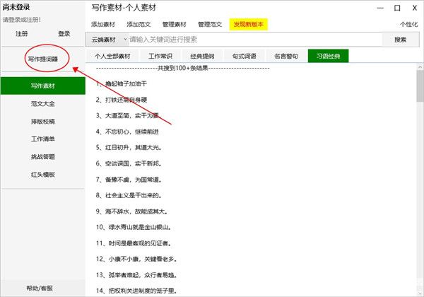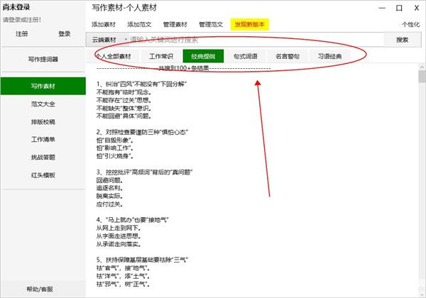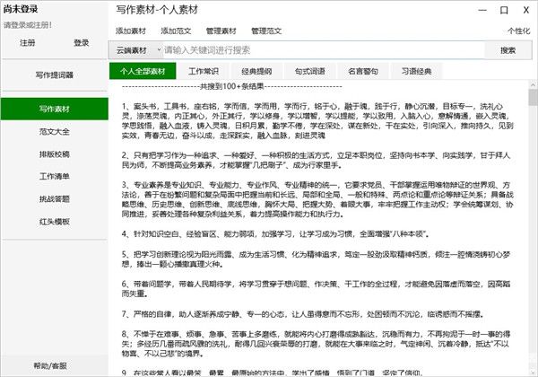 1、写作材料,主要是解决写作时找不到材料的问题。这些材料分为五类:工作常识,经典轮廓,句子模式,名言和经典成。