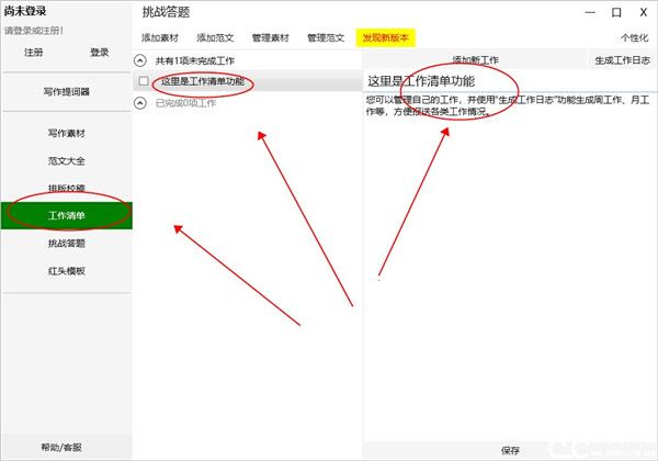 2、工作清单,主要用于解决频繁提交工作状况的问题。您可以将领导者安排的工作添加到工作清单中,并记录相关情况。