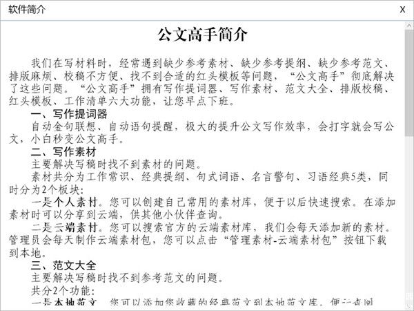 您还在为没有合适的公关素材而烦恼吗?您还在为找不到适合的公关模板而忧虑吗?那就快来下载我们这款公文高手吧!这是一款非常好用的各种公文模板编写软件,在里面有很多各式各样的公关模板可供用户选择,让用户也能够成为职场上的老手,不再为没有公关素材而担心了。因为它的内存是非常小的,所以运行起来也是十分的流畅,不会有半点卡顿现象,而且操作起来也是超级简单的,只需要动动鼠标,就可以创作出精美的公关文案出来。不仅如此,还有着很多的特色功能供用户使用,就比如提词提示器,可以帮助用户找出文章中的任意内容,还有书写的材料,可以让用户更加方便的创作,以及有着海量的示例文章让用户尽情的阅读,最后还有排版和校对的功能,把杂乱无章的文章都整理好,符合公关文件的格式要求,省去了非常多的时间,大大的提高了用户的使用效率,基本上可以满足对于公关素材的需求了。我们这款