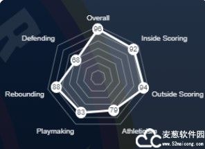 大帝出征,寸草不生,作为当今最强的中锋之一,恩比德在篮下拥有着绝对的统治力,能力值94分。