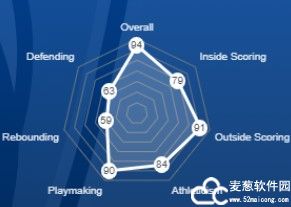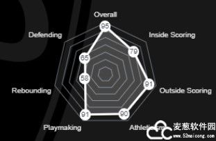 大胡子哈登,极致的规则使用者,每天凌晨起来背规则可不是说说的,一手无解的后撤步三分让人心碎,能力值94分。