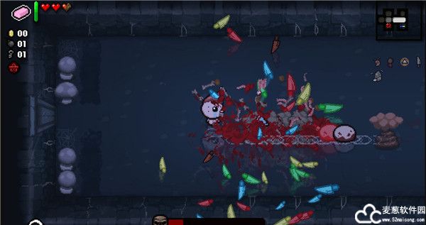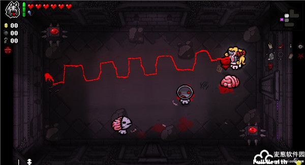 8、里莫大拉:高于2颗红心的任何血量都会随着时间流失,红心消失得快,魂心黑心消失得慢,独立计算时间,主动现在在卡片药丸槽里面但是不占位置,按一次回两红心并留下血渍。碰到怪物会挥剑,击杀敌人掉落半颗红心并且会很快消失。