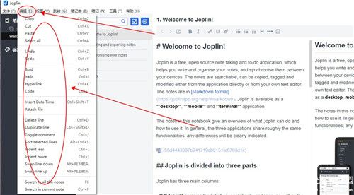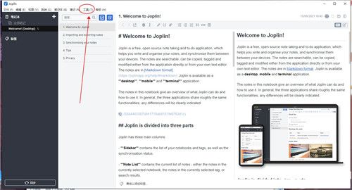 joplin作为一款拥有强大开源技术的笔记以及待办事项软件,所包含的特色功能是非常之多的,接下来就由小编带领用户领略一下它的魅力吧!您还有大量的笔记没有及时查看吗?您还有很多的待办事项忘记处理吗?那就快来下载我们这款工具吧,它可以随时随地解决您在笔记上碰到的所有难题,不管您的设备是电脑也好,是手机也行,是平板也罢,都可以使用,毕竟是兼容市面上所有的系统,不会再出现传输系统不支持的情况了,不仅如此,还能进行深度加密,在保证传输的快捷性,还有强大的安全保障,可以说是非常的强力,这也是受到很多用户追捧和青睐的原因。在软件的界面上,也是十分的整洁,所有的功能都一目了然,可以及时找到用户所需要使用的功能,在节省大量时间的同时,还能够有利于提高用户的使用效率,简直就是两全其美啊。我们再来聊一聊它具体有哪些特色功能吧,从简单来讲,可以支持NextCloud等第三方的服务实现同步,还能观看历史记录以及有着多种语言;而最重要的是能够导入JEX格式以及原始文件。我们这款
