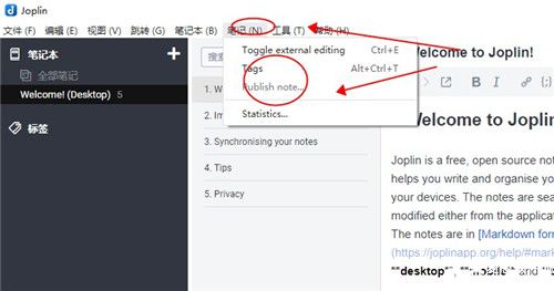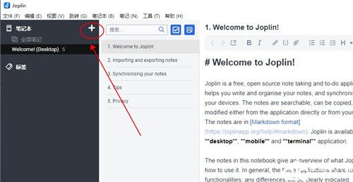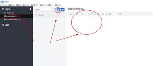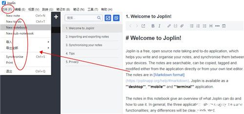 1、在joplin中文版的文件中,可以新建一个新的笔记,还可以导入和导出。