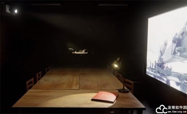3、进入到一个正在播放影片的会议室中;