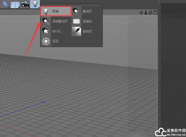 2、点击以后,会出现灯光、聚光灯、区域光、运动光、日光等,我们选择第一个灯光。