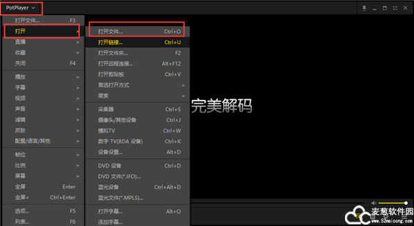 1、点击Purecodec最新版右左上角的打开-打开文件;