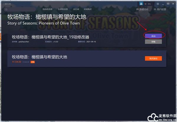 3、开启牧场物语橄榄镇与希望的大地十九项修改器各主初始项,如果没有可以不用开启,再使用各子修改项。