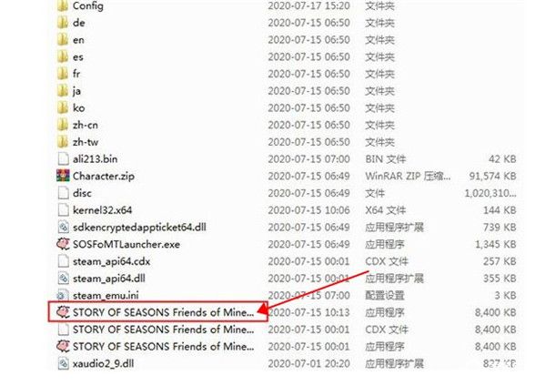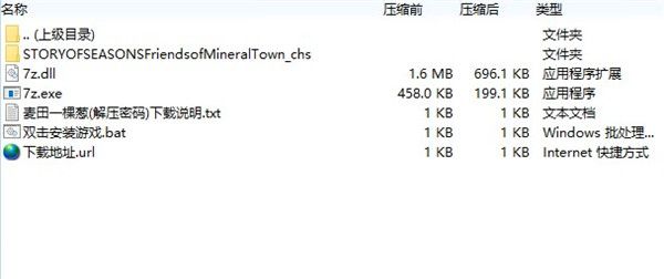 1、在麦葱站下载得到牧场物语再会矿石镇PC版的压缩包文件,解压到非中文路径中,