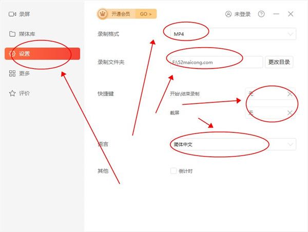 2、在设置中,可以修稿录制视频的具体参数,来达到您需要的标准。