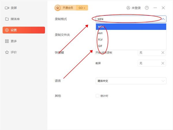 3、在录制格式中,有很多种类型可以选择,比如AVI、GIF以及FLV等。