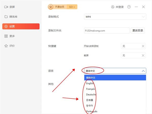 4、还可以对软件设置语言,而且有多国语言可以选择,当然这里默认是中文。