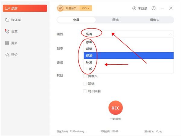 录屏君免费版拥有多级画质,满足所有主流视频画质要求,四个级别(普清、标清、高清、超高清)随心设置,不限时间不限大小。音画同步不卡顿,录制区域灵活。多种帧数可供选择,满足广大用户的不同需求。