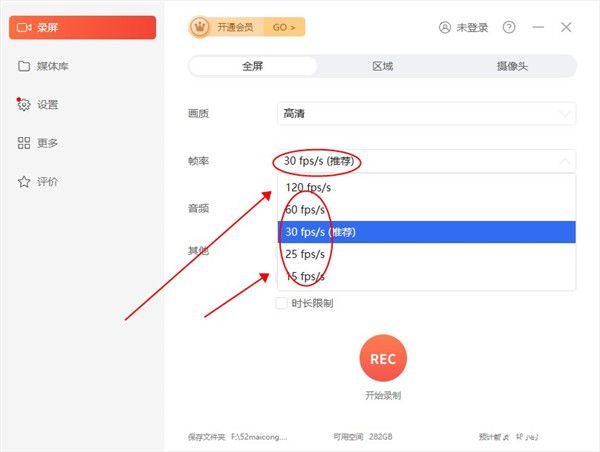 7、还有帧率可供用户挑选,帧率越高对电脑的要求就越大。