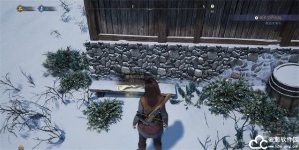 5、在村子中的石凳上可以找到雕塑的一只手臂,点击拾取。