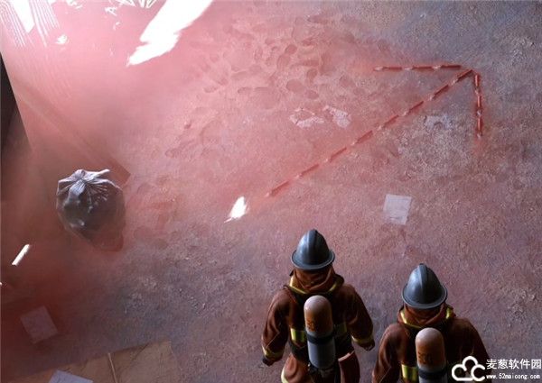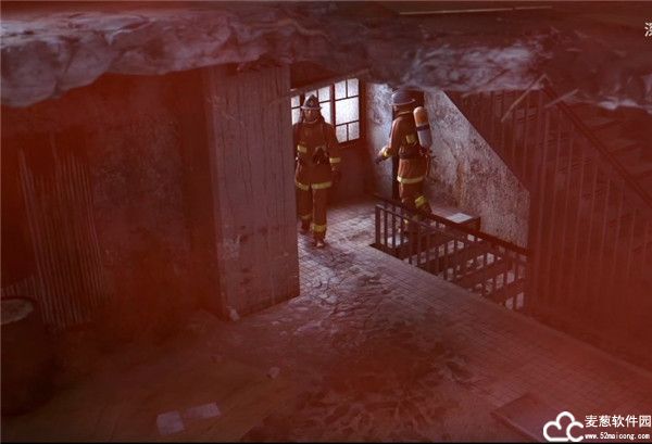 4、于是便有两名消防员进入大楼查看情况,他们来到了冒烟所在的楼层,小心翼翼地搜索着;