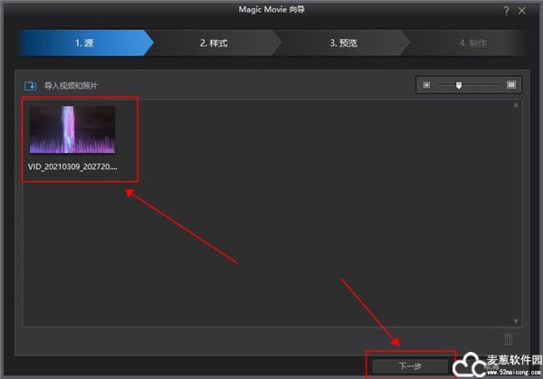 3、导入之后就可以看见素材已经在库中了,点击下一步;