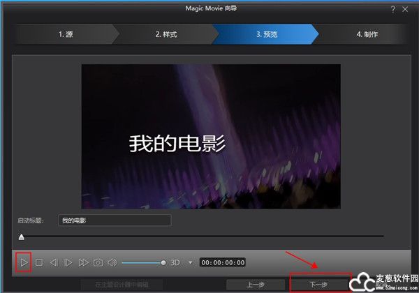 6、这是可以看见我们的导入的视频素材的预览效果了,点击左下角的播放键可以播放,之后点击下一步;