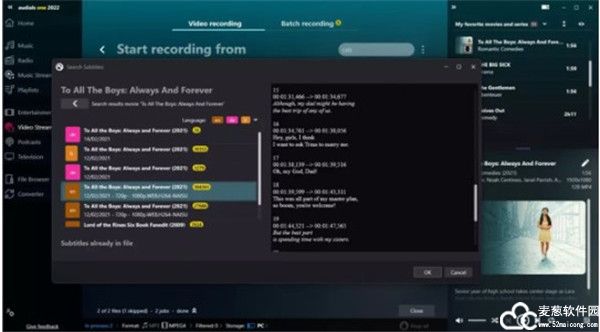 有了它,您可以轻松找到几乎所有语言的字幕,并在正确的时间将它们添加到您的录音中。只需单击此功能即可在录制过程中自动插入,因此不会错过电影中的重要对话。