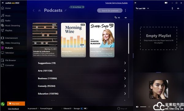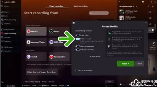 您也可以享受无与伦比的音质。通过电影氛围发现身临其境的体验。对于某些游戏,提供商支持以 5.1 多声道音频流式传输。借助Audials One 2022破解版,即使您的 PC 不支持,您也可以利用这一点并以影院质量录制。