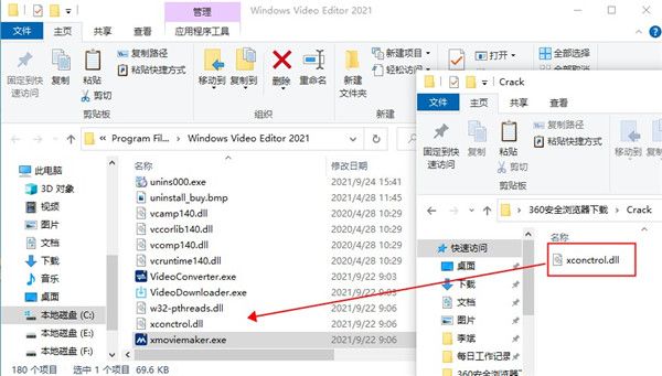 1、在麦葱站下载解压得到Windows Video Editor 2021中文版的源文件和破解文件;