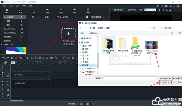 2、选择目标文件并添加到时间线