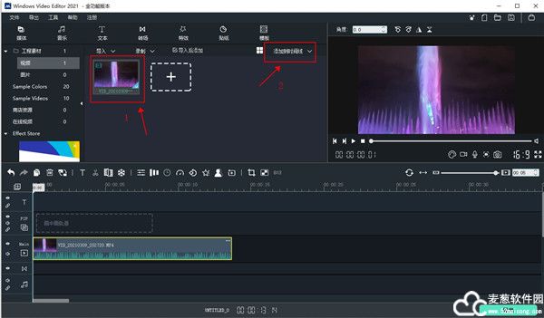 2、选择目标文件并添加到时间线;