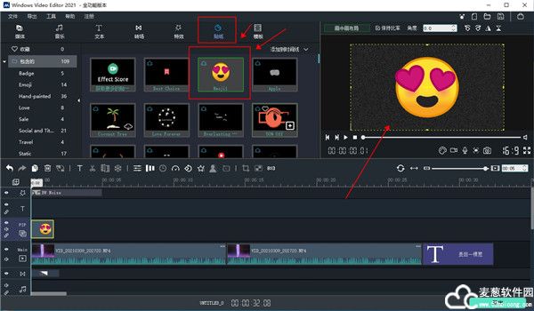 7、还可以在视频当中加入好看的贴纸;