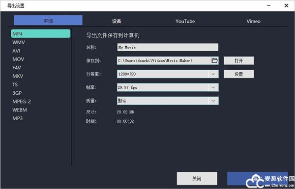 5、将电影导出到视频文件