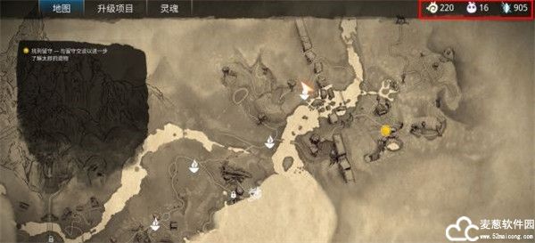 4、还是地图,在右上角会显示业力以及多少钱,还有携带的腐灵数量。