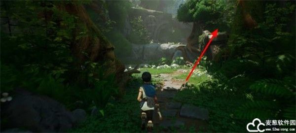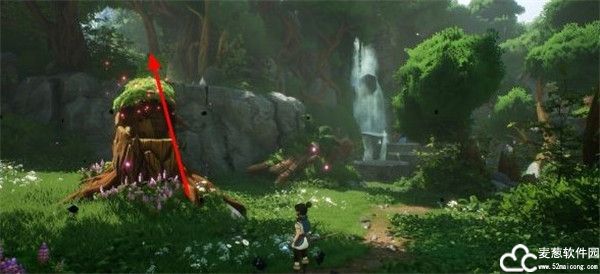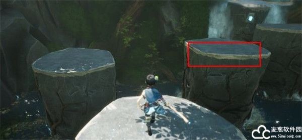 3、来到了一处小池塘旁边,再跳上右边的平台上即可,可以使用二级跳。