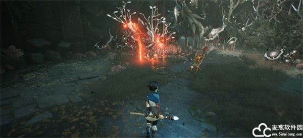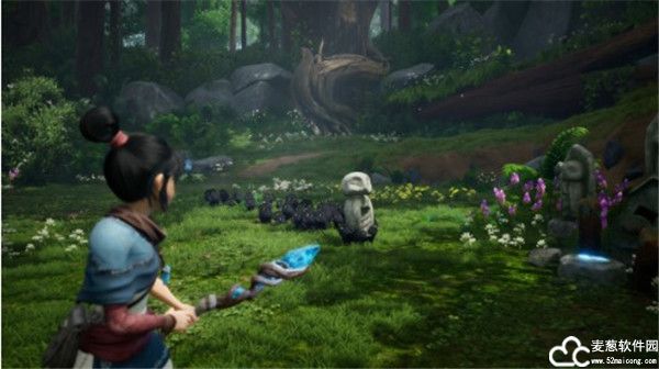 5、战斗方面,女主Kena可以使用她的杖进行轻、重、冲锋攻击,并将其升级为弓。