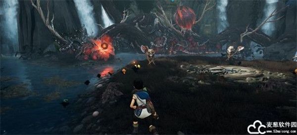 5、紧接着来到一处池塘边,让腐灵们搬起旁边的石头,可以触发机关。