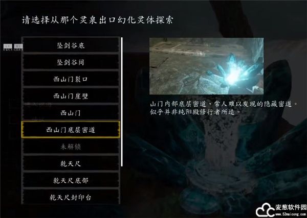 7、选择西门山底层密道,常人难以发现的隐藏密道。
