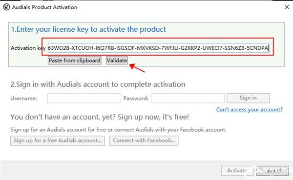 10、将63WD2B-XTCUOH-I6Q7RB-ISGSOF-MXVKSD-7WFJLI-G2KKP2-UWECI7-SSN6ZB-5CNDPA复制到方框中,并点击Validate进行验证;