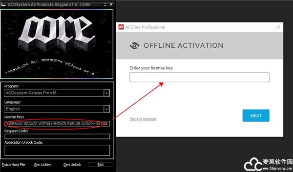 7、把刚刚打开的注册机中的序列号复制进去。