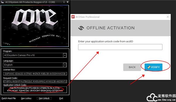 12、在下面会出现一串序列号,把他复制粘贴到软件内,再点击VERIFY即可。