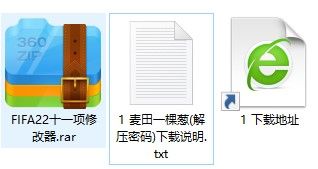 1、在麦葱站下载FIFA22十一项修改器压缩包并解压。