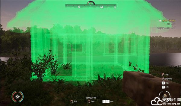 凑够6个还是8个原木后可以进入Q界面放下房子的地基(放的地方必须离村子一定距离远的平整土地上,这是不是排外……),然后房子的墙和房顶还需要额外材料。墙需要原木和树枝,房顶还要用到稻草。稻草可以在河边的芦苇丛里捡到。收集来材料后,装备锤子对着未完成的墙和屋顶敲就好了。