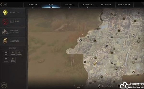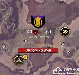 1、首先,在新世界公测版,我们需要打开地图,在上面可以清晰的看到自己所属阵营,这里以美西紫营为例,看到红色方框内的英文时,代表着24小时内这里将会有战争。