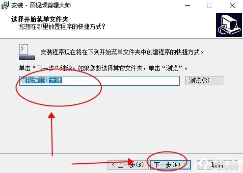 5、再设置选择开始菜单文件夹的快捷方式名称。